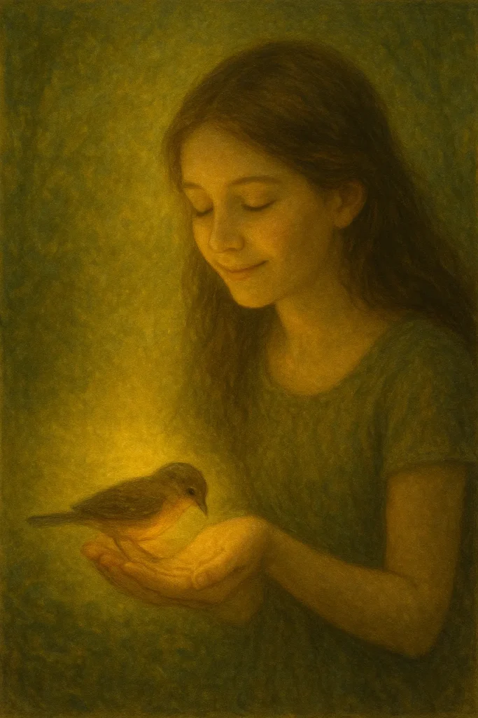 Con la bondad, vio a un pajarillo sediento y le acercó sus manos llenas de agua; sonrió al sentirlo beber sin esperar nada a cambio, solo por el gozo de aliviar su sed.