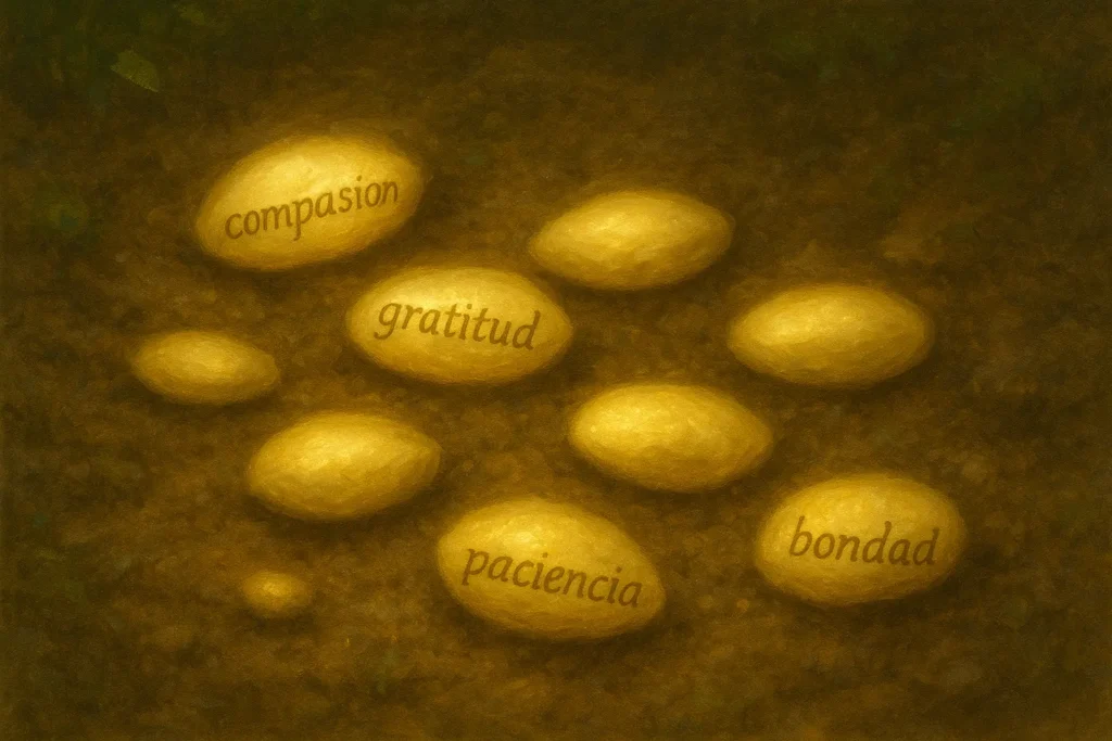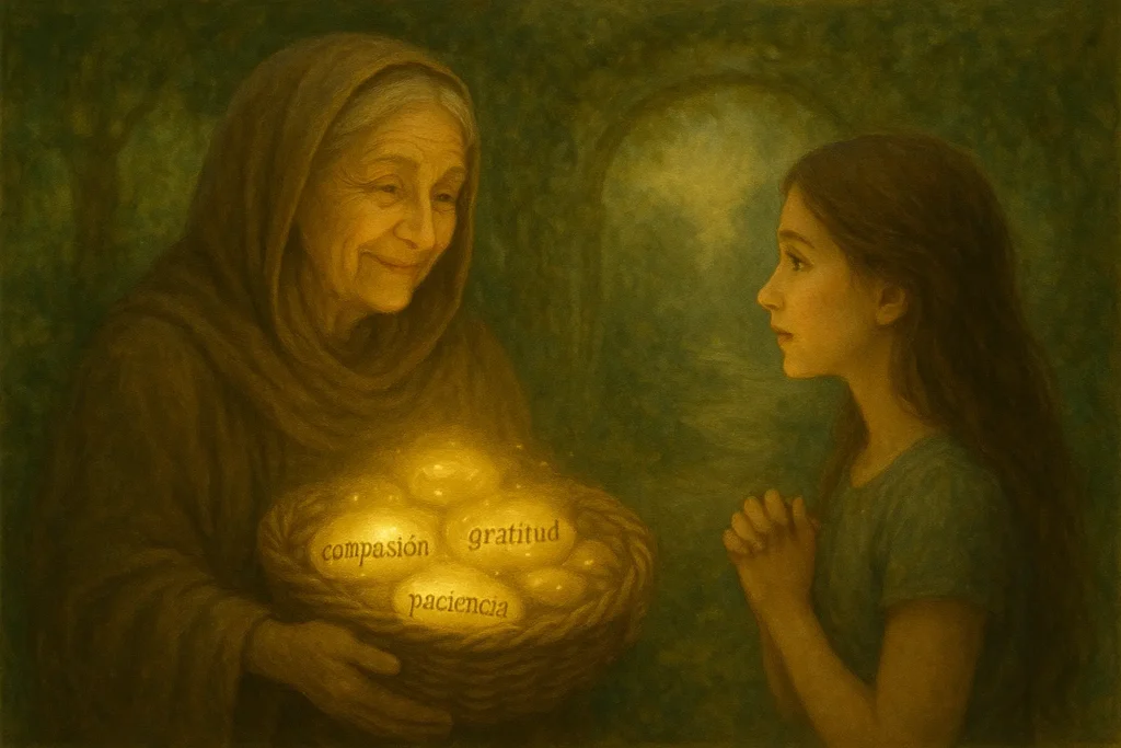 Al cruzarlo, se encontró rodeada de luz y aromas dulces. En el suelo había semillas diminutas, cada una con un nombre: compasión, gratitud, humildad, paciencia, bondad, diligencia, confianza, perdón, presencia…Una anciana jardinera se le acercó y le dijo: Este es tu jardín interior. Cada semilla es una virtud dormida en tu alma. Para que brote, debes cultivarla con actos, pensamientos y palabras que la honren.