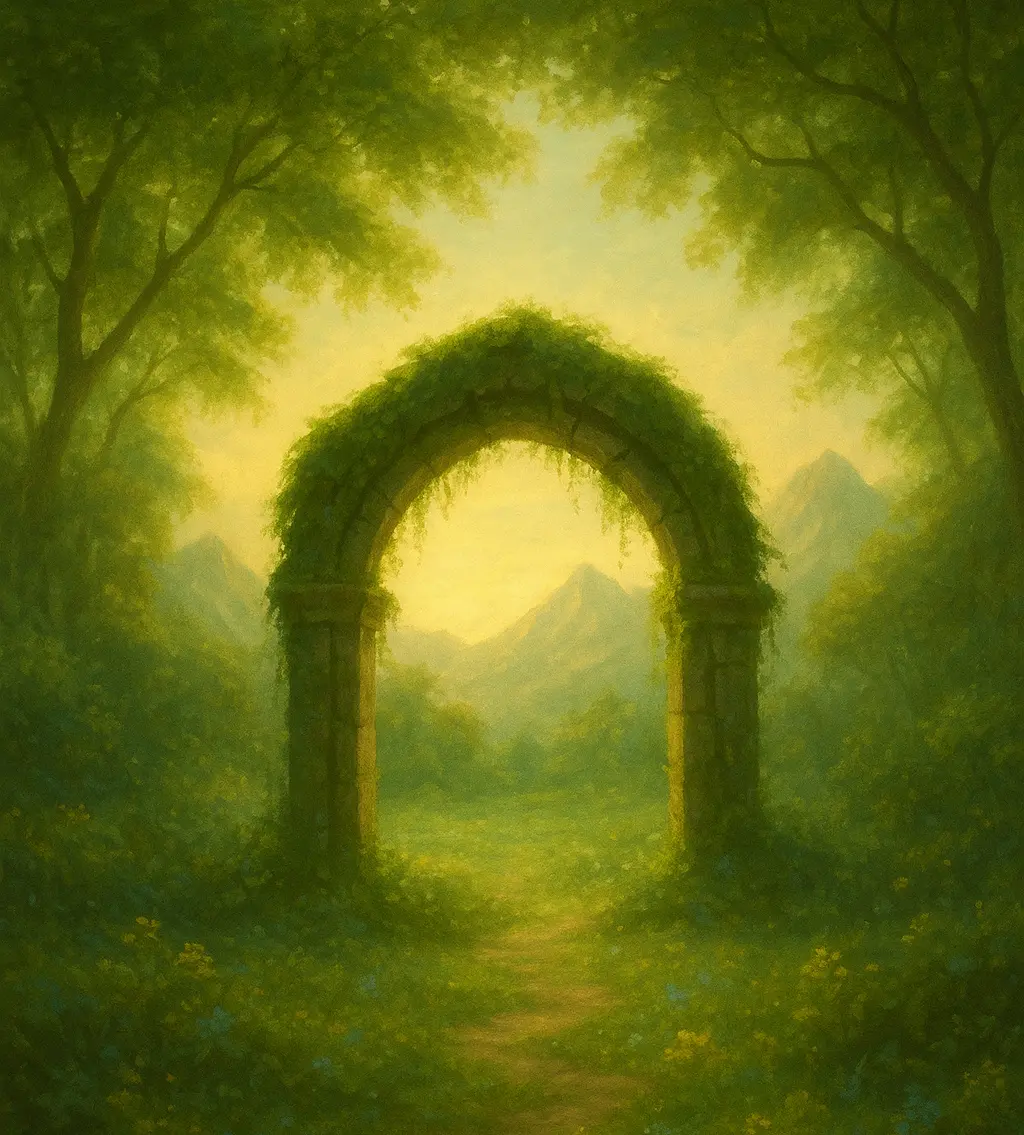 Allí vivía una joven llamada Lira. Desde pequeña sentía que su vida estaba hecha de prisas, preocupaciones y palabras que no decían lo que su corazón anhelaba. Un día, cansada de sentirse desconectada, siguió la intuición de su respiración y se adentró en el bosque. Tras horas de andar, encontró un arco de piedra cubierto de musgo con una inscripción: